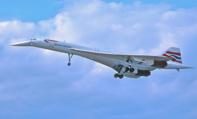 The reason the Concorde was unprofitable was, in fact, a side effect of its speed. When the plane sped up past the speed of sound – about 760 mph – it created shock waves in the air that would hit the ground with a loud and sudden thud: a sonic “boom.” It is so alarming for people on the ground that U.S. federal regulations ban all commercial aircraft from flying faster than the speed of sound over land.